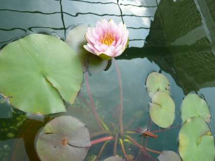 小運動場の飼育池にあるスイレンの花が咲きました。濃いピンク色と薄いピンク色のかわいいお花です。ピンク色のスイレンの花言葉は「信頼」だそうです。写真は今朝撮影したものですが、夕方には花が閉じていました。「睡蓮(スイレン)」の名は、太陽の光が弱くなると花を閉じて眠ってしまうように見えるところから由来しているそうです。