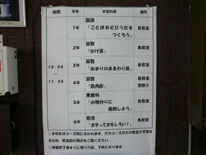 1,2時間目は、1〜5年生は通常授業、6年生は修学旅行親子説明会を行い、3時間目は授業参観を行いました。限られた時間ではありましたが、多くの保護者の方に来校いただき、子どもたちのがんばりをごらんいただくことができました。