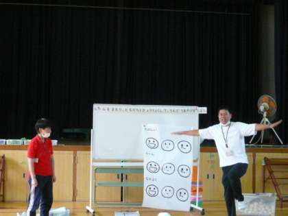 本日(金曜日)5時間目、講堂で「なかよしタイム」を行いました。