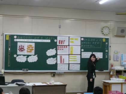 本校でおこなっている算数科の授業研究の1つとして、今回は1年生で、17日(水曜日)・18日(木曜日)、5クラス全てで順に研究授業を実施しました。