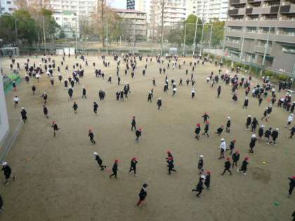 今日の児童集会は、2,4,5年生が運動場でおこないました。