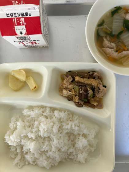 干しずいきはさといもの葉柄のことで、カルシウムや鉄、食物繊維が多く含まれています。昔から食べられてきた乾物の一つとして、児童に伝えていきたい食材です。