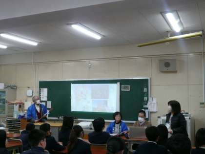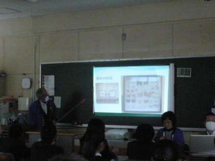 本日午前、福島区の歴史や文化などを伝える活動をされている「福島区未来わがまち会議」のみなさんが来てくださり、出前講座「時空旅行」をおこなってくださいました。