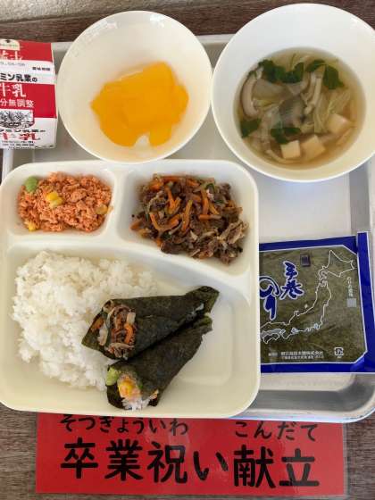 「手巻きごはん」は、牛肉のコチジャン炒めとさけのカラフルそぼろを、手巻き焼きのりでごはんと一緒に巻いていただきました。