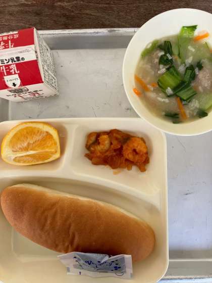 「中華がゆ」は肉だんごを使った児童に人気の献立です。