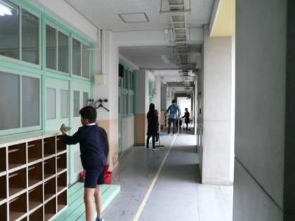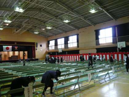 本日(木曜日)、明日の入学式の準備をしました。新6年生が登校し、教職員と協力して、式場,1年生の教室,廊下や階段などを、心をこめてきれいに掃除したり、かわいい飾りつけをしたりしました。