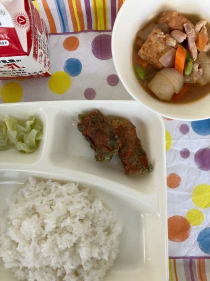 「ちくわのいそべあげ」は、ちくわに青のりを加えた衣をつけ、なたね油で揚げています。