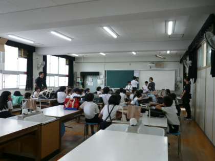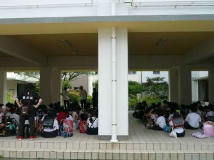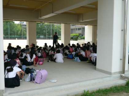 毎日集団登校をしている地区ごとの班で集まって、集団登校でのきまりについて確認したり、登下校中の道であぶないところはどこかについて確認したりしました。また、夏休みのくらしで気をつけなければならないことについても話しあいました。