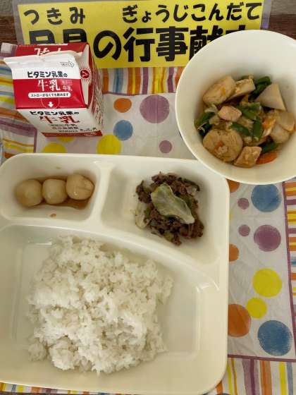 「一口がんもと里芋のみそ煮」は、十五夜が「芋名月」と言われることや、十五夜にさといもを供える習慣があることから、さといもを使用した煮ものとなっています。