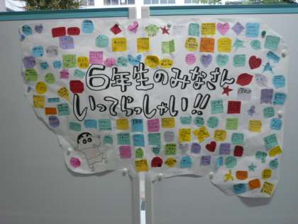 6年生は本日より、2日間の修学旅行へ出発しました。朝から雨のお天気ですが、学校での出発式の後、雨雲に負けない元気な声で「いってきます!」と出かけました。玄関の「6年生のみなさんいってらっしゃい!!」のメッセージは、5年生のみんなからの贈り物です。