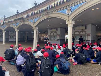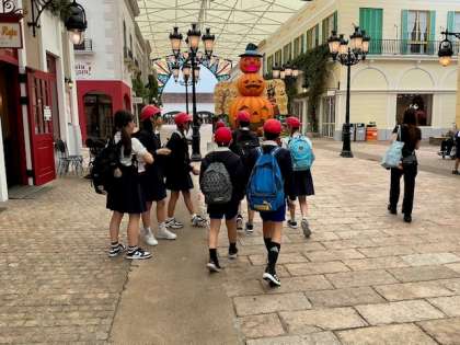 出発時には強く降っていた雨も、スペイン村到着時には奇跡的に止み、子どもたちはグループごとの活動を楽しみました。