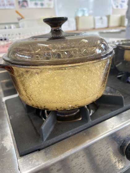 ガラス鍋を用いて観察しました。
