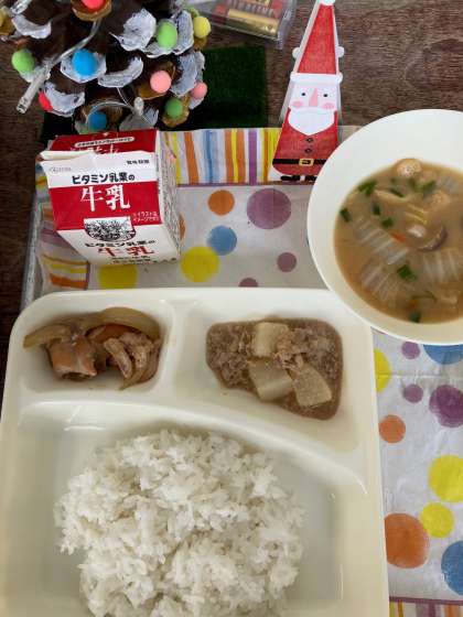「だいこんの煮もの」は、だいこんを豚肉と出汁で煮、みりん、うすくちしょうゆで味付けし、水どきでん粉でとろみをつけます。