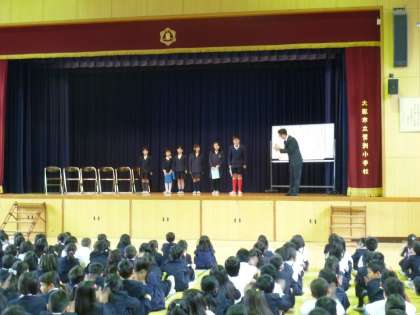 2学期の終業式のあと、恒例の「思い出作文」の発表がありました。どの子どもも、自分の成長を確かめるように作文を読み上げました。友だちのよさを全校で認め合う、温かい空気に包まれていました。