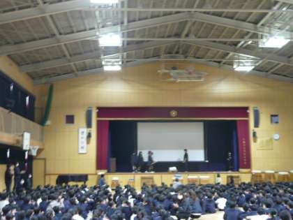 本日(金曜日)の児童集会では、体育館で「給食集会」をおこないました。