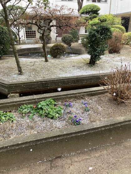 お昼の給食の時間には雪も降り、うっすらと積もりました。