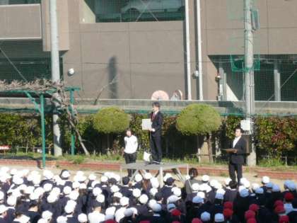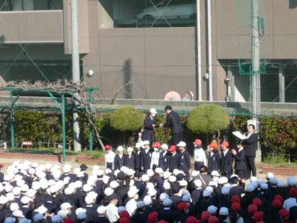 本日(月曜日)の全校朝会は運動場で実施しました。校長先生からは、まず表彰状の伝達があり、本校が「よい歯の学校」として表彰を受けたものも披露されました。
