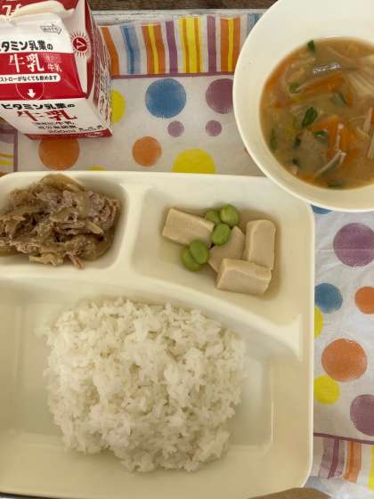 「こうやどうふの煮もの」は、こうやどうふを砂糖、みりん、うすくちしょうゆで味付けしただしで煮含めます。彩りにむき枝豆を使用しています。