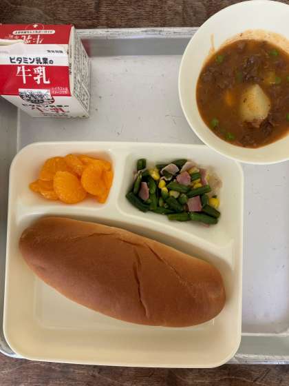 今日から1年生は自分たちで給食室まで取りに来て、自分たちで準備をしました。