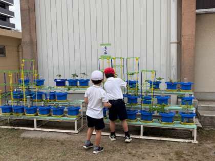 きゅうり、おくら、えだまめ、ミニトマト、、。一人ひとり大切に育てています。