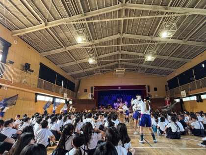 6年生は、たまっ子座のみなさんとのコラボし全校児童に披露するため、ワークショップに参加し指導を受けリハーサルを経て当日を迎えました。6年生の迫力ある表現に子ども達は感動していました。
