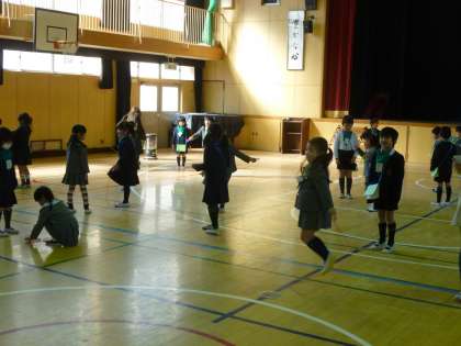 4月から新1年生となる園児を招き、現在の1年生たちがリードして、いろいろなコーナーを体験してもらいました。今の1年生は、園児たちの手を引きながらコーナーを回り、説明をしたり、体験のフォローをしてあげたりと、張り切ってがんばりました。もうすぐ2年生なんだなあと頼もしく感じました。(写真は、なわとび・昔あそび・さんすうの様子です)