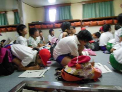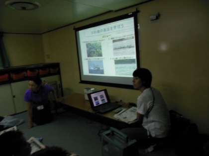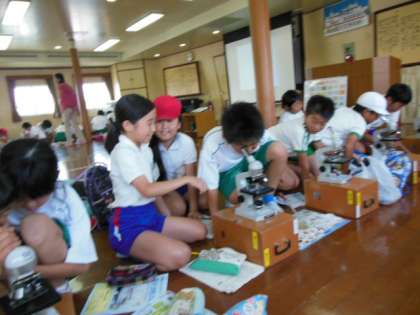 体験活動の伝統漁法、プランクトンの観察の様子です。