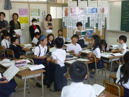 「主体的・協働的な学びの推進モデル校事業」の一環で、公開授業を行いました。市内・府下から30名の先生方にお越しいただき、授業に対するさまざまなご意見をいただきました。こうした取り組みで、本校職員の力量が向上していきます。