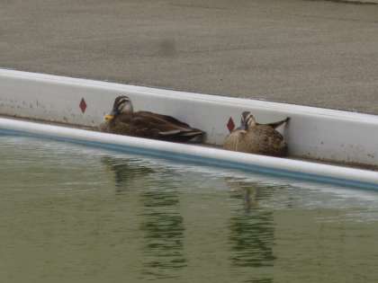 さっそくプールに見に行くとツガイのカモがプールサイドで涼んでいました。無事にプール開きができたようです。