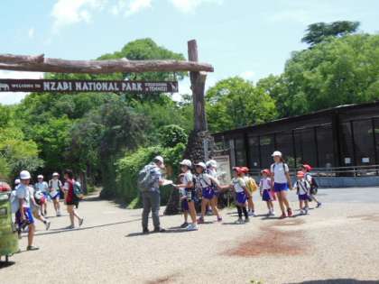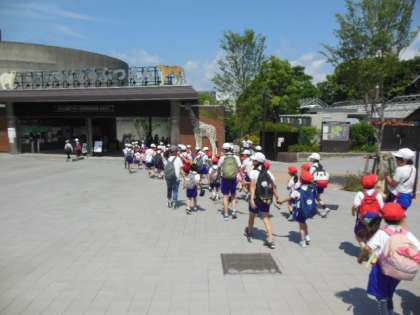 1年生と6年生がそれぞれ2、3人ずつでグループになり、一緒にいろいろな動物を見て回りました。6年生は上級生としての自覚が芽生え、1年生は頼もしいお兄さん、お姉さんができて安心して活動していました。