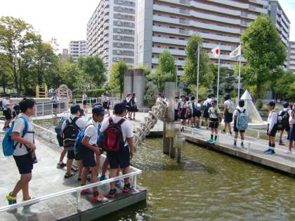 下水道施設を地下探検したり、大阪市の下水道のしくみのクイズに答えたりと、楽しんで体験、学習していく子どもたち。最後に、子どもたちから出た11個の疑問にもていねいに答えていただき、また次の道がひらけてきたようです。