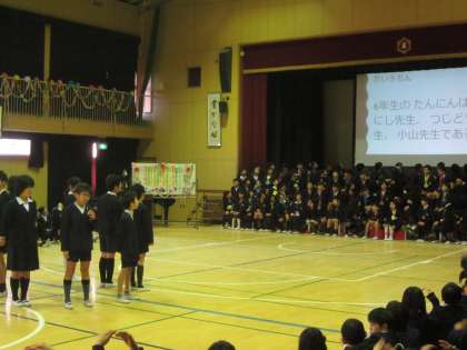 3月2日(金)卒業を間近に控えた6年生を祝う会が行われました。1年生から5年生の児童から6年生への感謝の言葉がかけられました。