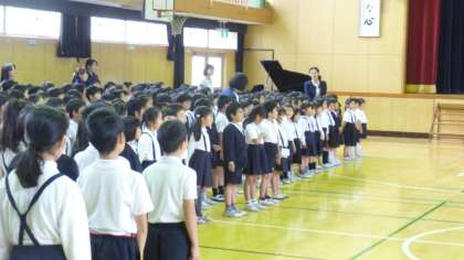 鷺洲小学校では、毎月第4週目の金曜日には児童全員が講堂に集まって♪音楽集会♪をしています。