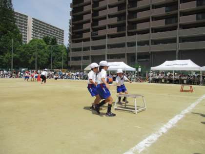四人で力を合わせ、バランスを取りながらボールを運びました。
