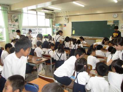 1年生は、6年生の大きないすに座らせてもらい、優しく話してもらい、遠足がとても楽しみになったようです。