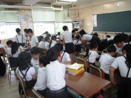 金曜日の遠足の打ち合わせとして、1・6年で、自己紹介をしたり、動物園のまわり方を話し合ったりしました。