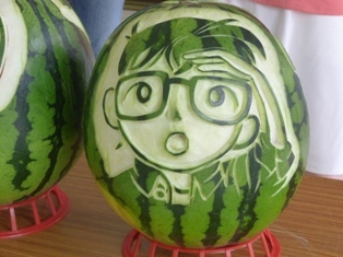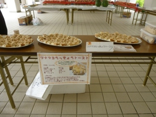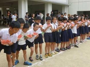 すいかの種飛ばしをして、最高記録をめざしました。コーナーには「らっきょう」を使ったトーストやサラダまで用意していただきました。