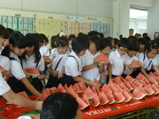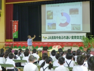 「食」についての学習をしました。遠方よりたくさんのゲストティーチャーにお越しいただき、特産品を紹介していただきました。試食もでき、子どもも保護者も大満足でした。出前授業で「本物」にふれることで、子ども達の学習意欲が高まり、学びが深まります。