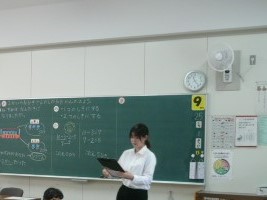 25日(水曜日)は、校内で2つの研究授業をおこないました。2時間目は、今月から教育実習生として本校に来ている井上先生の算数の授業でした。井上先生は、指導教員の東川先生のもとで、毎日一生懸命教育実習に取り組んでいます。研究授業を終えた井上先生は「緊張しましたが、いつも通りにできました。」と笑顔で話してくれました。