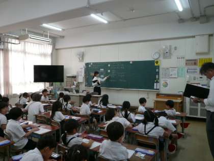 本日(火曜日)3時間目、新任教員研修(1年目)としての校内研修の1つとして、1年2組で研究授業を実施しました。
