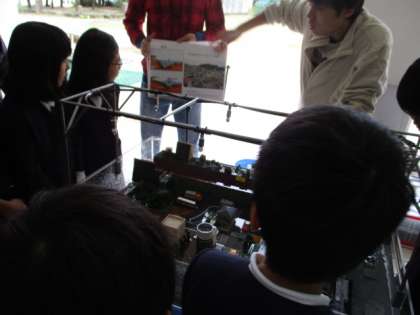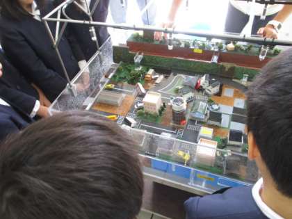 模型の町を見て自分たちの町がどうなるのか想像したり、何センチメートルまでの浸水ならドアを開けて逃げることができるのかを体験したりしました。