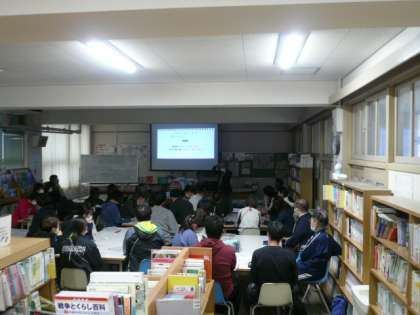 放課後は今回も、先生方全員が図書室に集まって、授業について振り返り、内容について討議をする研究協議を行いました。
