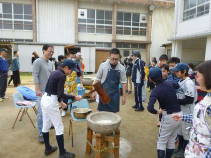 3月6日(日)6年生の卒業を祝い、PTA主催でもちつき大会を行いました。杵を正確に振り下ろすのは結構難しく、子どもたちは四苦八苦していましたが、みんなでついたお餅はとってもおいしかったです。PTA役員・実行委員さんには、計画段階からたいへんお世話になりました。また、鷺洲連合町会からも、早朝より多数ご協力いただきました。子どもたちを温かく支えていただき、本当にありがとうございました。