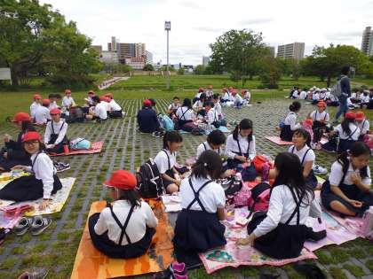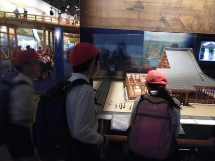 4月22日の金曜日、5・6年生は春の遠足で大阪歴史博物館へ行きました。大阪の歴史に触れた後は、近くの難波の宮跡公園でお弁当を食べ、たっぷりと遊びました。晴天に恵まれた楽しい遠足でした。