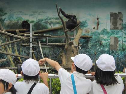 4月22日金曜日に、1.2年生で天王寺動物園に行きました。ライオンや、きりん、ぞうなどたくさんの動物を見ることができました。どの動物にも夢中になっていました。お昼になると、手作りのお弁当を友だちに「見て見て」といいながらおいしそうに食べていました。お天気にも恵まれ、楽しい一日を過ごしました。