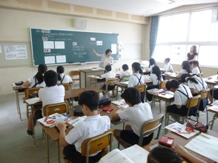 今回は、1・2時間目に学習参観がありました。たくさんの保護者の方に見ていただき、子ども達には励みになりました。4年生では、恒例の食育の出前授業もありました。写真は、1年生国語「よんでねきいてね」、2年生「町たんけんの発表会」です。