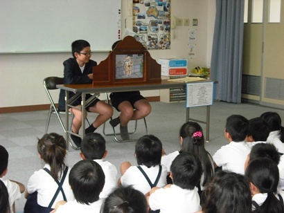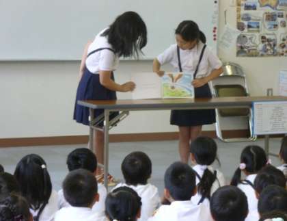 図書委員会による読み聞かせを行いました。図書委員がそれぞれ読んであげたい絵本を選び、練習をして当日を迎えます。どの委員も、「よくわかるように、楽しめるように」と工夫を凝らしていました。お話を聞いている子どもたちも集中しています。終わった後、読み聞かせをしてくれた図書委員に対し拍手で感謝の気持ちを表しますが、「今日も面白かった!」の声があちこちから聞こえていました。