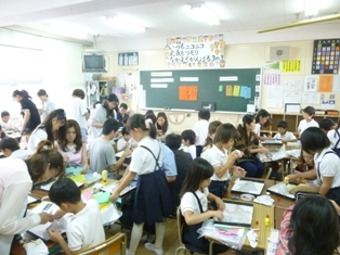 6年生は、歴史の学習の一環として、大阪歴史博物館に行きました。メモを一生懸命とっている子どもたち。「歴史新聞」が楽しみです。