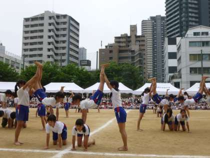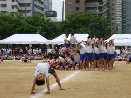 土曜授業の2時間目に、保護者の方と一緒に3年生が自分たちの体の仕組みについて学びました。ヤクルトの方を講師にお招きして、腸の働きについて、腸を元気にするにはどうしたらよいかということを学びました。下の写真は、腸を元気にする体操にみんなで取り組んでいる様子です。