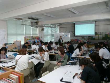 外国語科・外国語活動の指導や、Eタイムの活動などで活用できる豊富な内容や資料で、楽しくご指導いただきました。先生方も日々、研鑽に励んでいます。 -